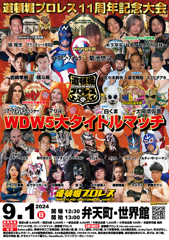 9/1(日)『道頓堀プロレス11周年記念大会』全対戦カード