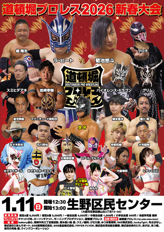 1/11(日)『道頓堀プロレス2026新春大会』全対戦カード