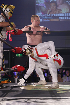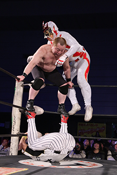第3試合 20分1本勝負 スペル・デルフィン&冨宅飛駈○若翔洋(8分25秒、体固め)太陽塔仮面&菅沼修&めでタイガーマスク× ※ボディープレス