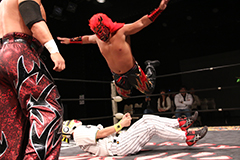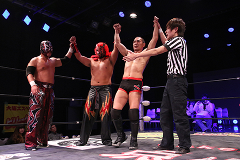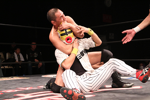 (12分54秒チョークスリーパー)南条隼人&織部克巳&めでタイガーマスク×