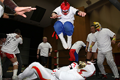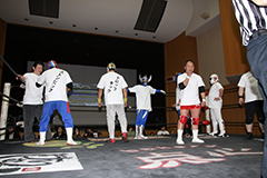 退場順:スカイデJr.〈スペイン語〉、太陽塔仮面〈太陽塔ロック〉、めでタイガーマスク〈ドロップキック〉、ミスターUO〈ボディスラム〉、キャプテン”美ら海パイレーツ”ザック〈コーナーに上る〉、ダイナ御堂〈ネックブリーカードロップ〉、スミヒデアキ〈ローキック〉、リアル・イヌナキン〈吠える〉、冨宅飛駈〈スリーパーホールド〉、菅沼修〈チョップ〉、エイサー8〈ストンピング〉