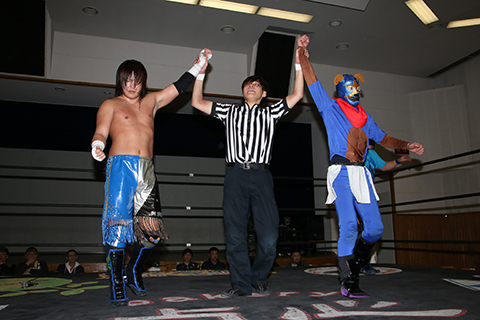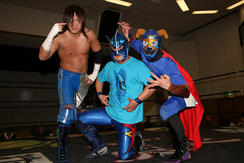 (18分43秒、片エビ固め)ガメラス&三原一晃×