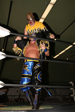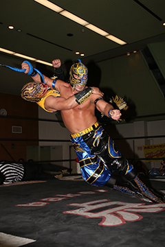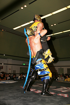 ◯ヲロチ(18分17秒、 前方回転エビ固め)HUB×