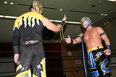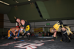 三原の乱入、イス攻撃からスリーカウント取られてしまったHUBは試合後ヲロチに『いつまでジョーカーに、空牙の下にいるんだ。蛇と蛇、俺たちが組んだら面白いんじゃないか?』と共闘を呼びかけるがヲロチは中指を突き立てて拒否。