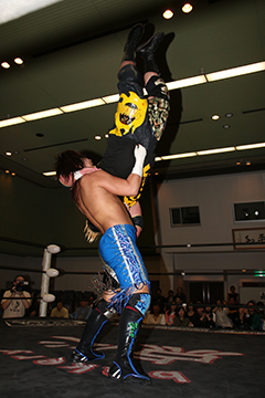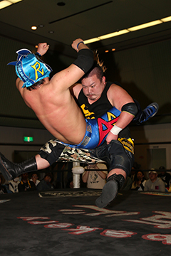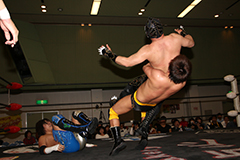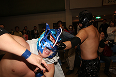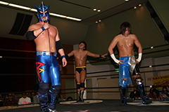 ◯ラ・ピート&TORU&大久保寛人(17分08秒、 片エビ固め)空牙&三原一晃×&ガメラス