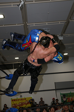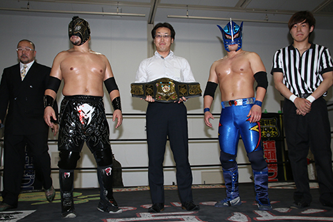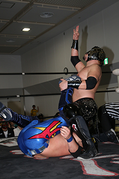 <挑戦者>○ラ・ピート(18分19秒、片エビ固め)空牙×<王者>