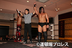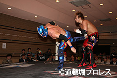 試合は一進一退の攻防で後半畳み掛けたTORUがドゥラメンテで王者ラ・ピートから完璧な3カウントを奪う。