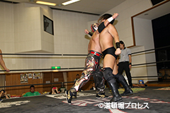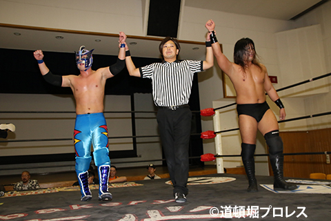 | 試合後、ヒロ・トウナイがリングにあがり 「はじめまして。この道頓堀プロレスに初めて参戦してとても素晴らしいと思いました!その素晴らしい団体のそのベルトに興味があります。ラ・ピート選手!そのベルトにヒロトウナイ、挑戦を表明します。」と紳士的にタイトル表明。 ラ・ピートも 「プロレス界のニュースで大阪に拠点を移すと聞いて気になってたけど道頓堀プロレスを選んでくれてありがとうございます。まだ関西のプロレス事情がわからないと思うんでこの道頓堀プロレスチャンピオン、ラ・ピートが道頓堀プロレスを隈なく案内してやるよ。このシリーズの最終戦でやろうじゃないか。」とそれを受諾。 これにより最終戦でのタイトルマッチが決定した。 |