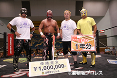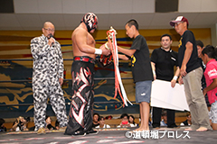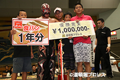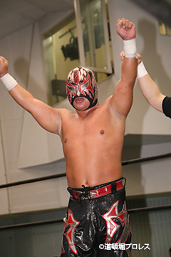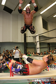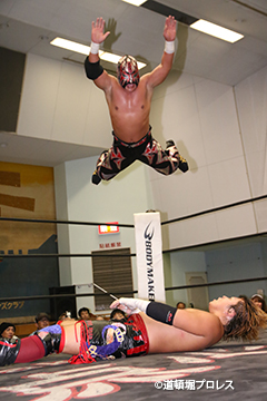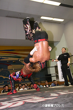 更に岸和田がトップロープからのボディプレスからダメ押しのラストライドで勝利。岸和田が道頓堀最強男となる。