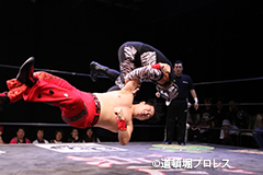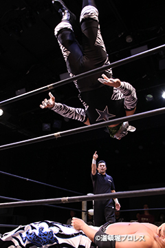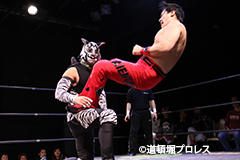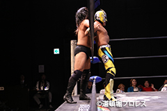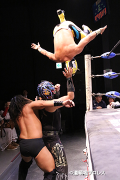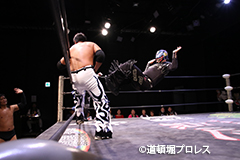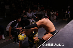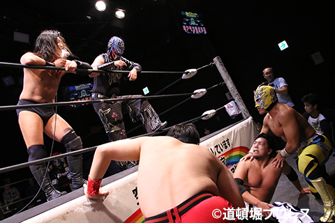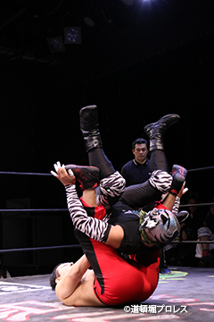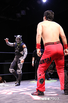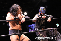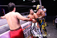 | 次回大会の公式戦前哨戦はヲロチ、タダスケが織部の足を集中攻撃しギブアップを奪う。 試合後タダスケは「手短に言うぞ。どう考えたって俺らが優勝候補やろ!まずはビリー、残念やったな。そんな何年経っても蹴りしか使わんヤツをパートナーにしてな。織部!勝つためやったら俺ら何でもやるねん。それがタッグのベルトに繋がるんじゃ!1回戦、お前覚えとけよ。お前狙いじゃ!!」とビリー、織部を挑発。 次回大会で公式戦1回戦ヲロチ&タダスケvsビリー&織部が行われる。 |