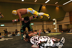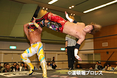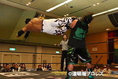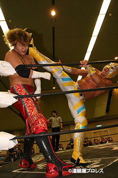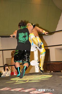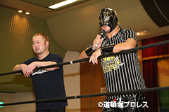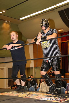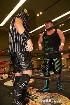 | 試合後のマイク TORU『今日も楽勝やったよ。正直、ヲロチ&タダスケが来ると思ったけど、ビリーケンキッド、いや特に織部克巳!もう若手の中で上も下もないって今日戦ってわかりました。今日は戦えて嬉しかったです、ありがとうございました。 予定通り決勝まで進んだぞ、菅沼、空牙出てこいよ!』 菅沼『お前ら、先輩の名前呼ぶときはちゃんと「さん」付けろ。決勝で相手に俺が居るからってナメとったらエラい目にあうぞ!普段アホなことばっかりやってるからってナメとったらあかんぞ。』 空牙『特にTORU、お前には最強男でやられてるからな、決勝でその借り返させてもらうからな。おいヤングボーイズ!俺たち酒豪兄弟、いやオッさんをナメんなよ!!お前らに勝って試合後は兄弟菅沼修と祝杯あげさせてもらうからな。』 三原『おい、虎おじさん、ラーメンじじい、お前ら眼中にないんじゃ!TORU!優勝するぞ!』 TORU『12月23日まであと1カ月と少しあるけどそれまでこの熱を冷まさずにクリスマスイブイブに俺達が優勝して熱いクリスマスを過ごしましょう!決勝にご期待ください!!』 |
