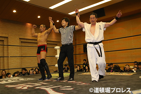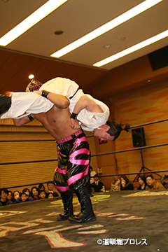 ◯ 冨宅飛駈&スミヒデアキ 11分2秒、胴絞めスリーパーホールド
