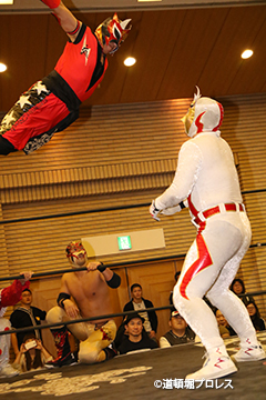 6分42秒、ノーザンライトスープレックスホールド 太陽塔仮面 ×