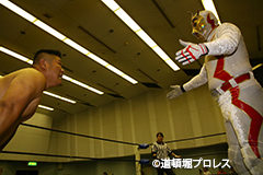 試合後、太陽塔仮面が7/16エディオンアリーナ第二大会でのお笑いオールスターバトルロイヤルの開催を宣言。全国より参戦者募集を呼びかけ。