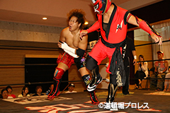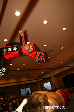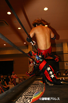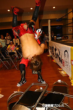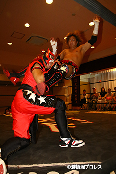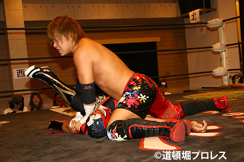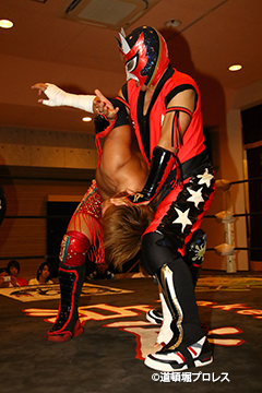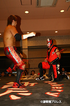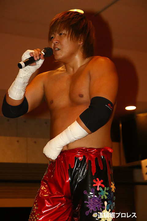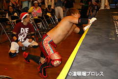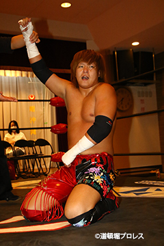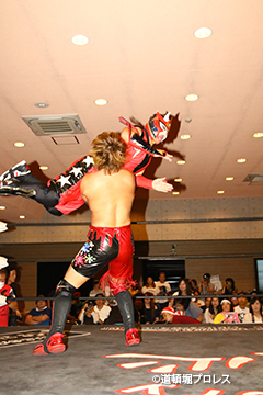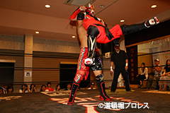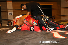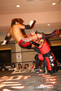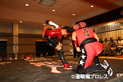 | 赤城が序盤からTORUを追い込む。場外で椅子の上への赤城ドライバーであわやリングアウト負け19.5ギリギリでリングに戻ったTORUのシャイニング・ウイザードの足を掴んでSTFで切り返す。 ムーンサルトの失敗からTORUがペースを取り戻しDガイストから垂直落下式ブレーンバスターで勝利した。 TORU「最強男トーナメント、必ず僕が優勝します!!」 | |||||||||