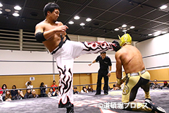14分17秒、変形エビ固め 三原一晃