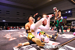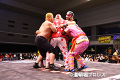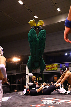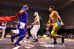 6分38秒、首4の字固め くいしんぼう仮面 ×