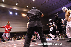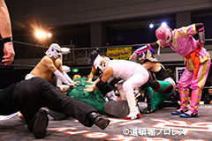 退場順:空手マシン3号、リアル・イヌナキン、こなモン、海ゴーヤ、めでタイガーマスク、デストロイカー、ミスターUO、木下享平、めでタイガール、賀川照子、ふぐ面デスラー、スペル・ガトー、佐野直、守屋博昭、菅沼修、救世忍者乱丸