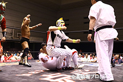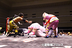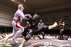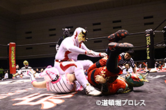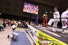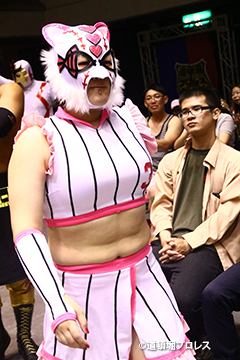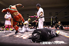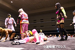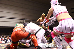 退場順:めでタイガーマスク、夏すみれ、佐野直、スミヒデアキ、スペル・ガトー、大久保寛人、めでタイガール、金龍