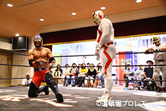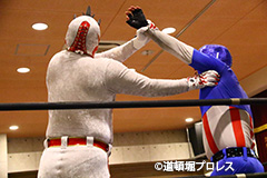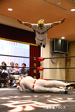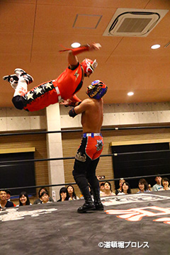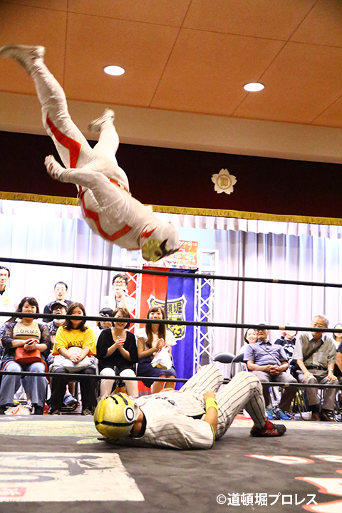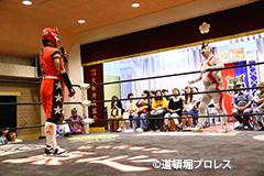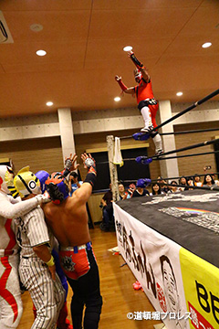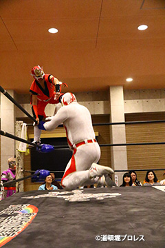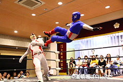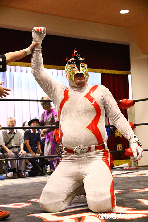 | 太陽塔の申し出により次回9/16の5周年記念大会での WDWWタイトルマッチ、<王者>赤城 vs <挑戦者>太陽塔仮面が決定。 |