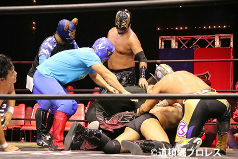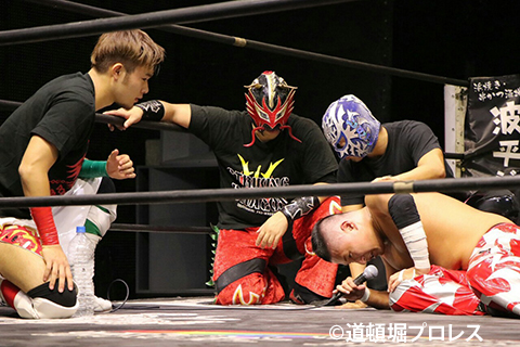 | 一旦、引き上げたrageだがビリーらが撮影中、再び乱入。 ヲロチが鬼風車でビリーをKO。 ビリーは次回大会でのタイトルマッチでの報復を宣言した。 |