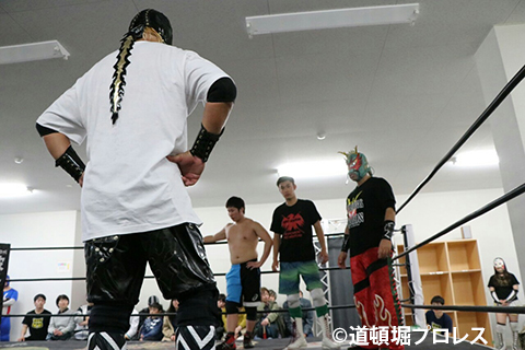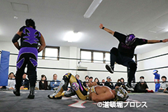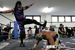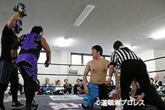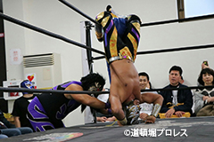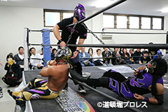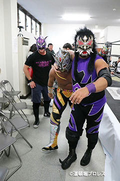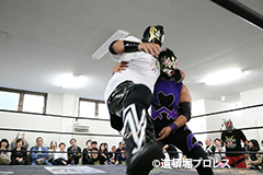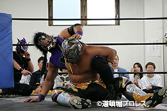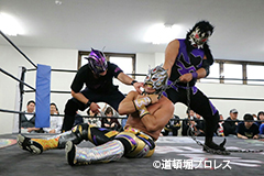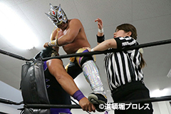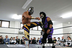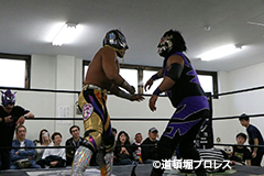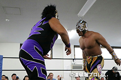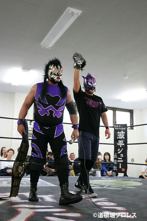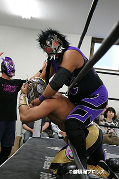 | セコンドのラ・ピートの介入など反則三昧のディアブロ、空牙たちも救出に乱入もするが最後はレフェリーをラ・ピートが引きつけている間に急所攻撃から丸め揉み手3カウント。ディアブロが新王者となりビリーのマスクもはぎ取りバッドエンドとなる。 ディアブロは次の挑戦者に空牙を指名するが金龍、菊池悠斗、晴斗希が立ち上がり、rage3人との対戦を要求、これにより5月5日の対戦カードが一部変更となり、メインイベントが金龍&菊池悠斗&晴斗希vsディアブロ&ラ・ピート&ヲロチに変更となった。 |