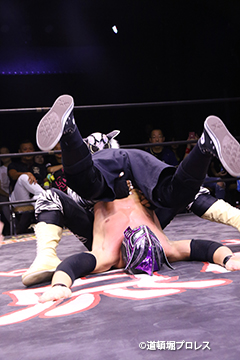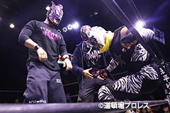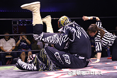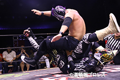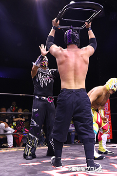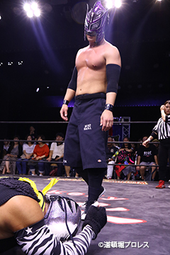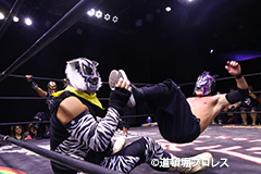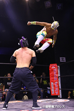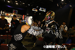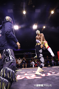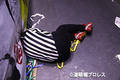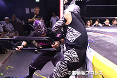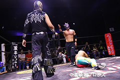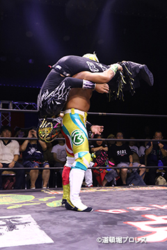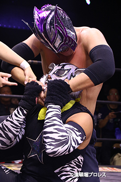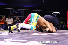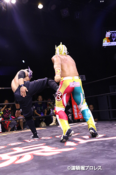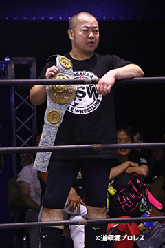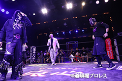 ここで菅沼修が入場曲とともにWDWWのベルトを肩に入場。 いきり立つ菅沼にラ・ピートは「流派が違う」と一蹴。