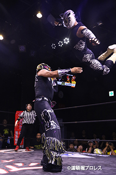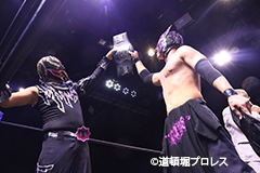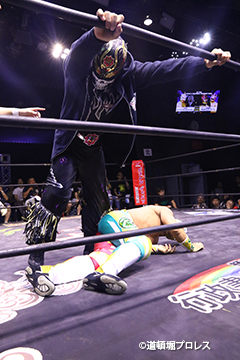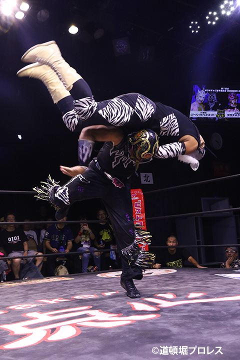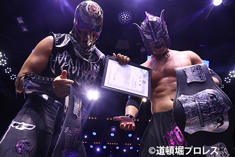 ラ・ピート「シングルのベルトはrageのディアブロが持って、2019年の最強男はrageのヲロチが取って、今日!道頓堀プロレスのタッグはrageのラ・ピート、ヲロチ組の物になったぞ!道頓堀のすべてを手に入れるためにはあと一つ!次の・・・」