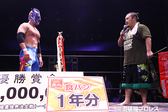 2020年の最強男はラ・ピートに! 優勝した証に0WDWシングルへの挑戦することが決定。 リング上で王者、三原一晃もこれに承諾し、ラ・ピートの希望を呑んで次回の昼大会でのタイトル戦が決定した。