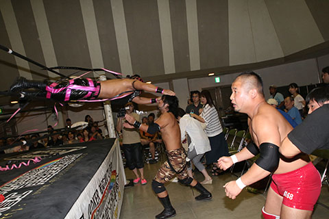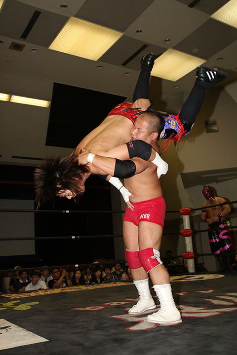 HUB&◯TORU(11分38秒、片エビ固め)内田祥一&ダイナ御堂×