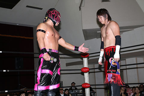 「TORU!わかった。俺はなお前と年末のタッグリーグにあわせて今日もコンビネーション、いい感じに決まったしな。これからタッグで上を目指していこうと思ってたけど、お前とのシングルなら文句ねぇよ。