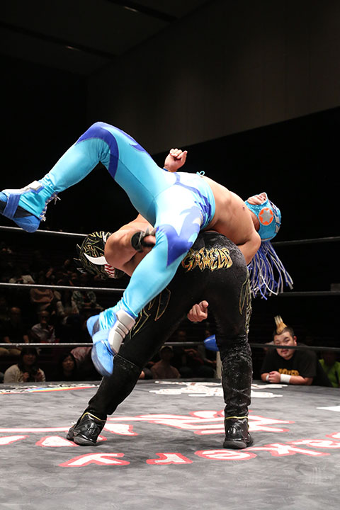 ◯<挑戦者>ガメラス (11分41秒、片エビ固め)コスモ☆ソルジャー<王者>×