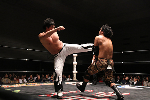 第1試合 20分1本勝負 ◯ビリーケン・キッド&織部克巳(8分02秒、片エビ固め)内田祥一&ダイナ御堂× ※ベルティゴ