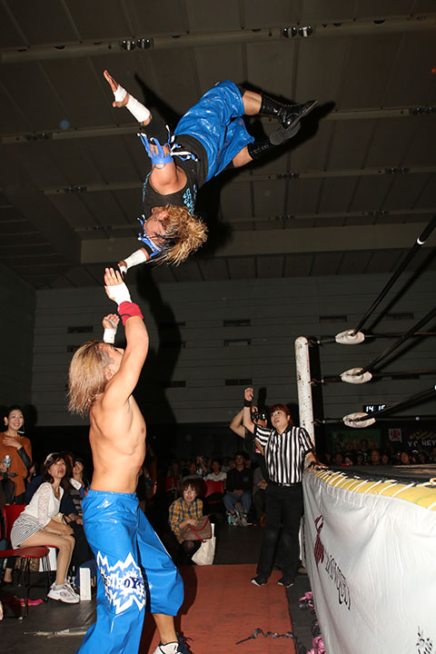 第6試合 30分1本勝負 ◯ラ・ピート&正岡大介(17分43秒、片エビ固め)YO-HEY×&HAYATA ※ダイビングダブルニードロップ