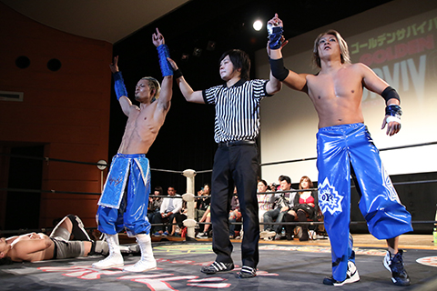 ○HAYATA&YO-HEY (13分1秒、片エビ固め)三原一晃&織部克巳×