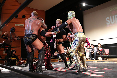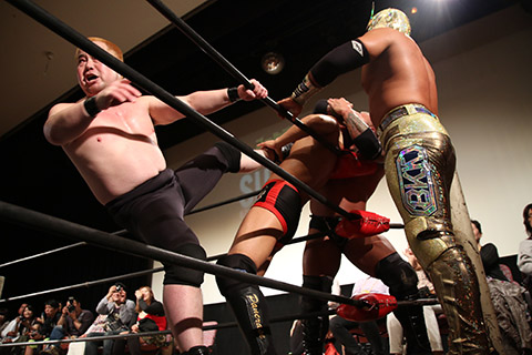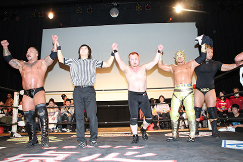 (22分56秒、エビ固め)空牙&マグニチュード岸和田&冨宅飛駈×