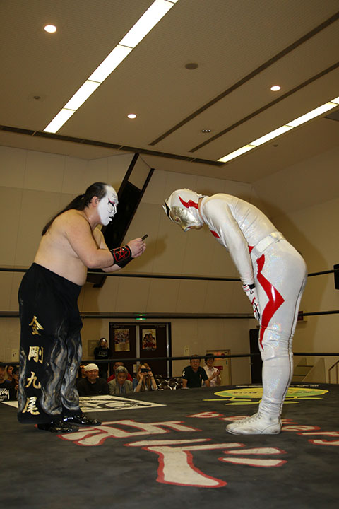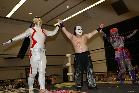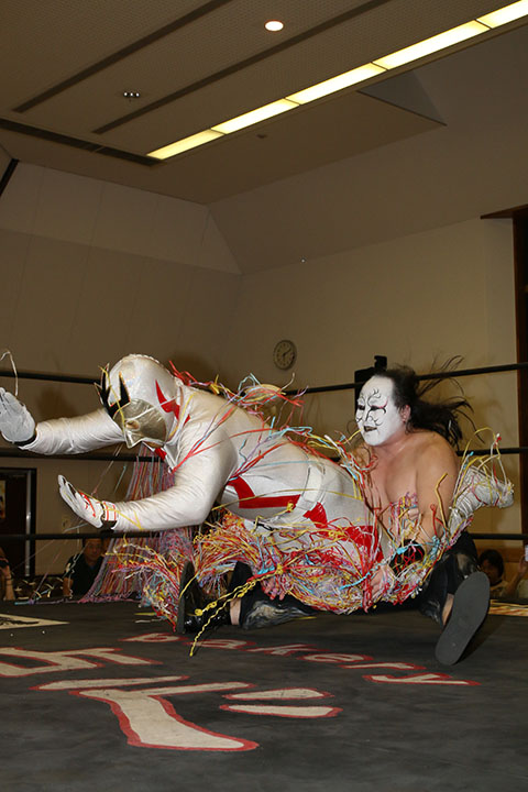 ○松山勘十郎(8分29秒、片エビ固め)太陽塔仮面×