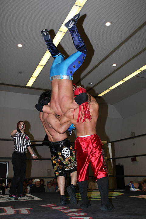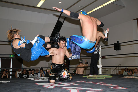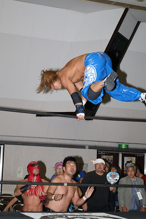 第4試合30分1本勝負 ○ラ・ピート&正岡大介&HAYATA (15分58秒、片エビ固め)政宗&MIYAWAKI&ガメラス× ※特急DDT