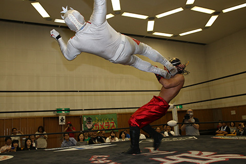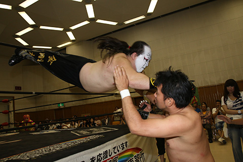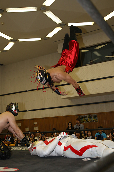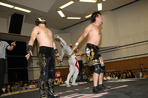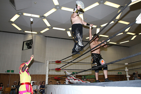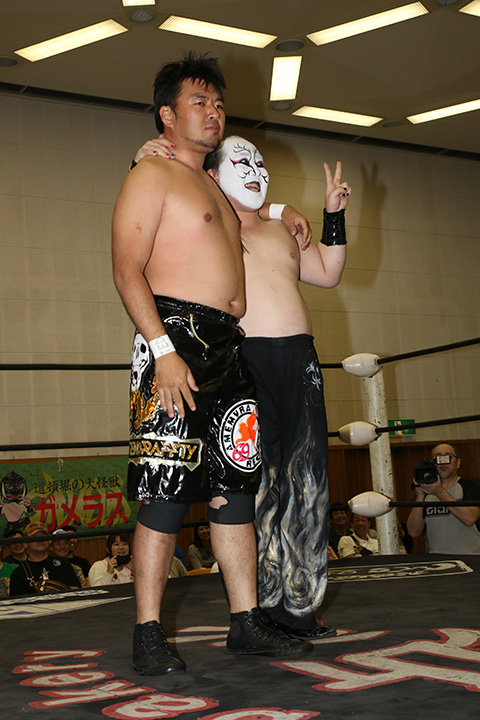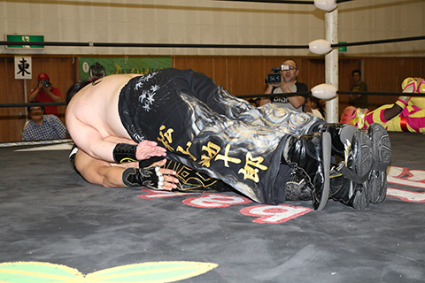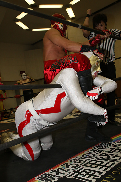 第3試合20分1本勝負 ○政宗&MIYAWAKI&ガメラス (11分27秒、片エビ固め)太陽塔仮面×&救世忍者乱丸&松山勘十郎 ※雷切 ことごとくお笑いを封じ付き合わない政宗は試合後、このカードに対する怒りを露わにし、またビリーの挑発にも受けて立つ姿勢を見せた。