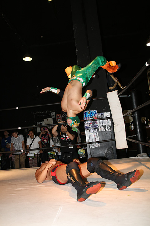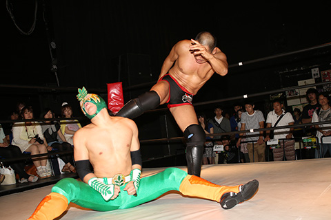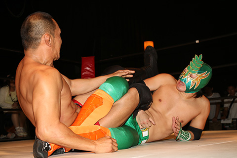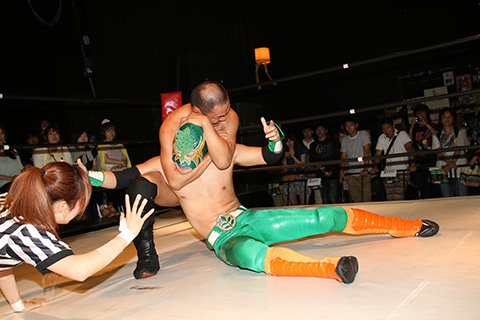 ○冨宅飛駈(7分18秒、チョークスリーパー)サンショーマスク