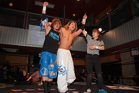 ○HAYATA&正岡大介(17分25秒、片エビ固め)HUB&TORU●