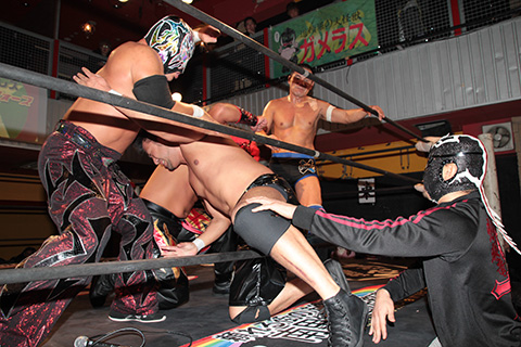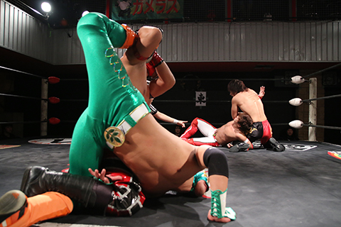 マグニチュード岸和田&○信玄(11分9秒、、片エビ固め)ダイナ御堂●&スミヒデアキ