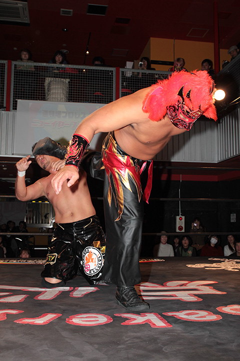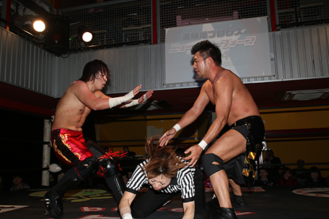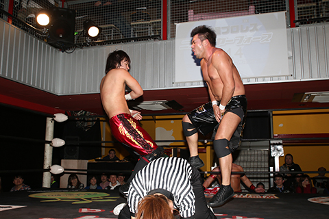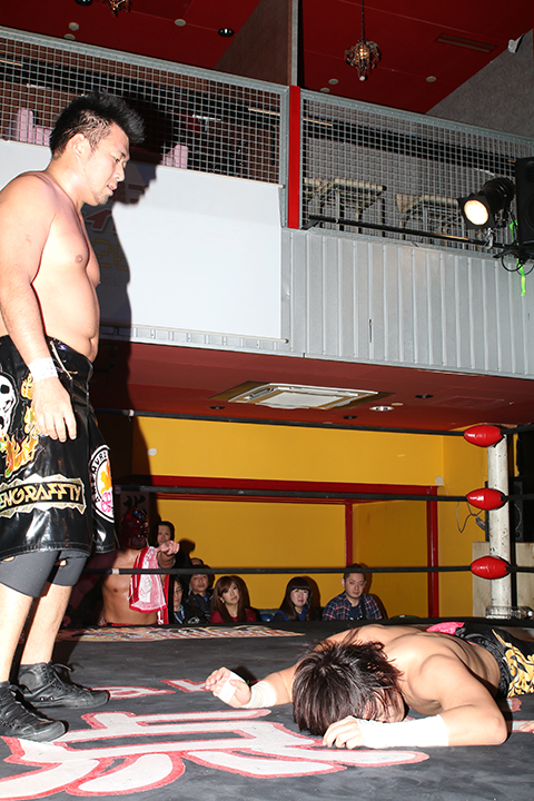 この日も冨宅のスリーパーが火を噴き序盤にラ.ピートが戦線離脱、岸和田組の猛攻の末、フィニッシュも冨宅のスリーパーとなった。