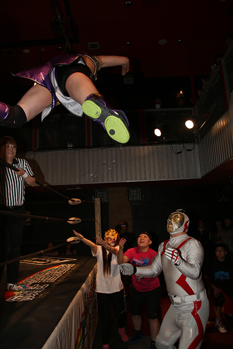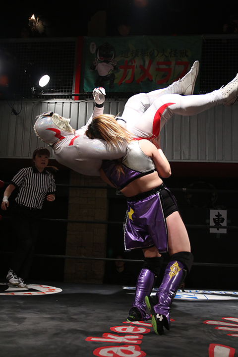 ○山下りな(6分45秒、片エビ固め)太陽塔仮面●