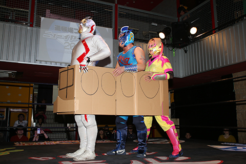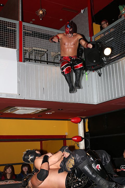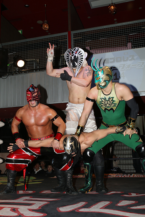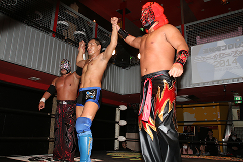 ラ・ピート(11分35秒、片エビ固め)太陽塔仮面●