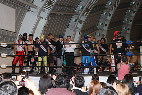 HUB&○GUNSO(5分33秒、片エビ固め)太陽塔仮面&めでタイガーマスク×