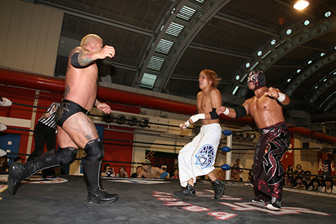 △政宗&HAYATA&岸和田(4分10秒、無効試合)The Bodyguard&YO-HEY&冨宅△