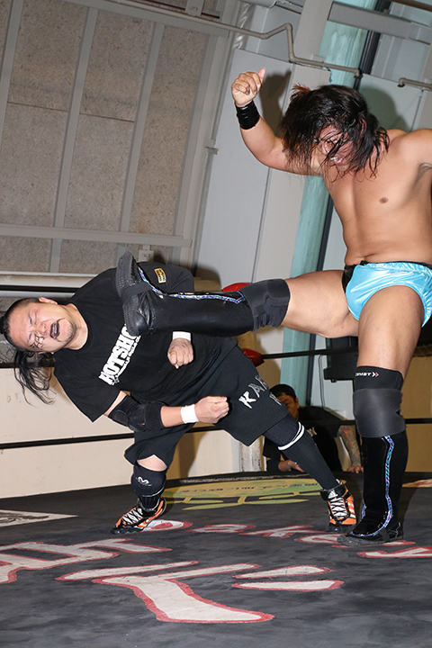 ○タダスケ(6分56秒、片エビ固め)カブキキッド×