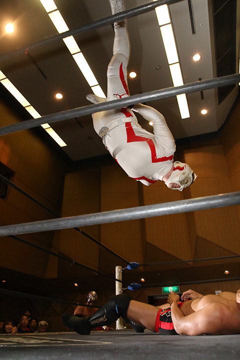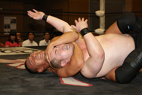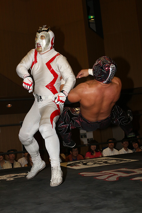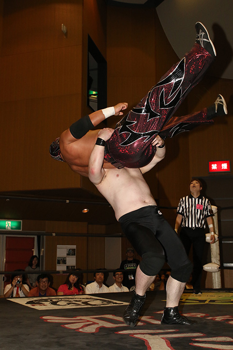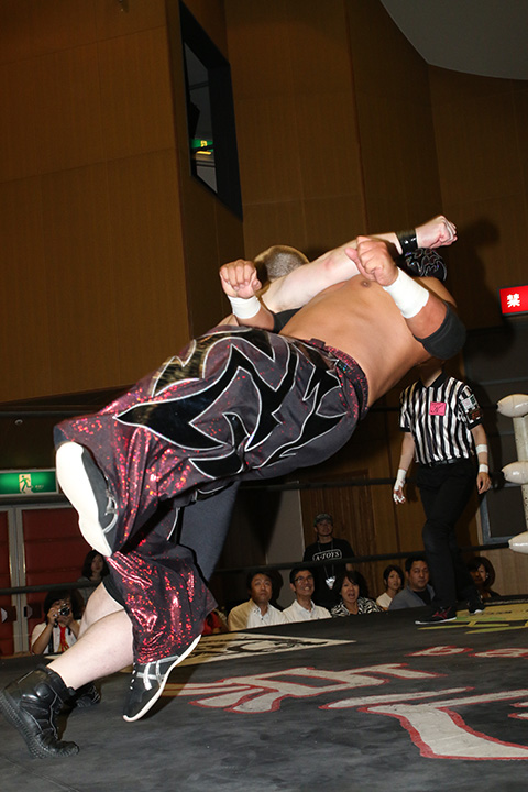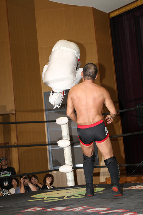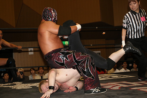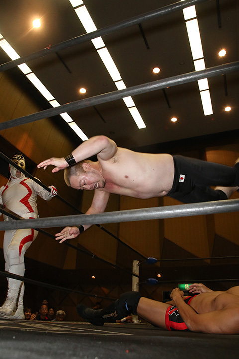 (12分44秒、スリーパーホールド)太陽塔仮面&菅沼修×