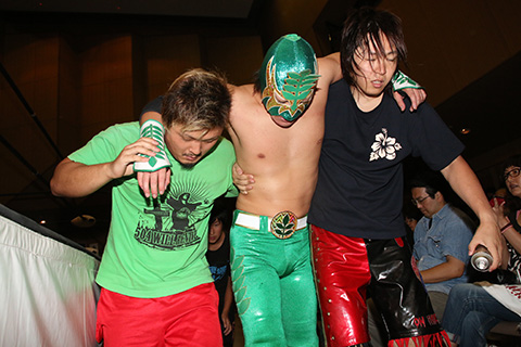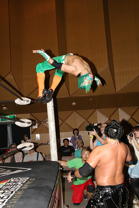 その後、足を引きずりながら試合を続けるが、最後は雪崩式でのトルネードスタンプで空牙の完勝となった。